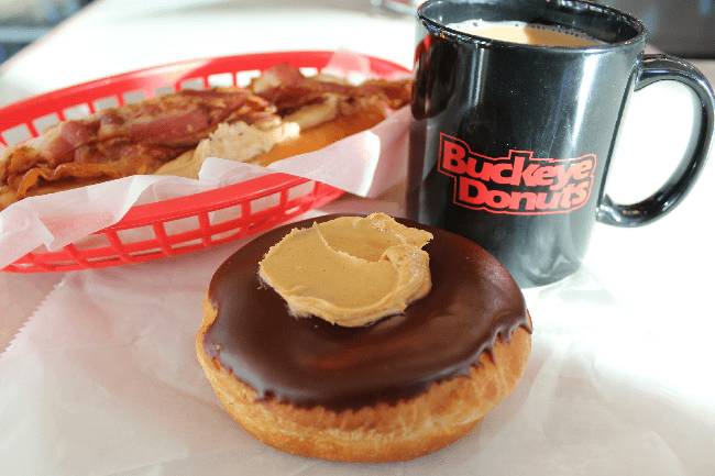 You can find Buckeye Donuts in the heart of Ohio State University’s campus. The shop is open 24 hours to make sure all those college students remain fueled by breakfast and hot coffee. They have 32 kinds of donuts including coconut cake, bowties, and of course, the famous buckeye donut frosted with chocolate and peanut butter!